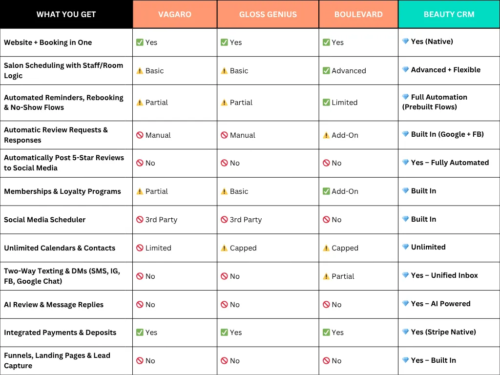 Your upgrade from Vagaro, Gloss Genius, and Boulevard