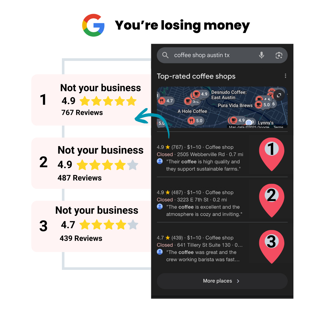 Build the trust your business needs to grow. With our automated Google review tool, you’ll get more reviews, more customers, and a clear edge over competitors, effortlessly.
